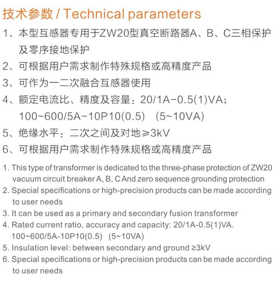 名稱:零序電流/電子互感器