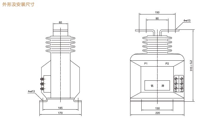 本型互感器采用環氧樹脂膠作主絕緣,將一次繞組和部分二次繞組用樹脂澆注成一整體組件,另一部分二次繞組在鐵心上露,一次引出線在頂部,二次接線座在側面壁上,鐵心為疊片式。