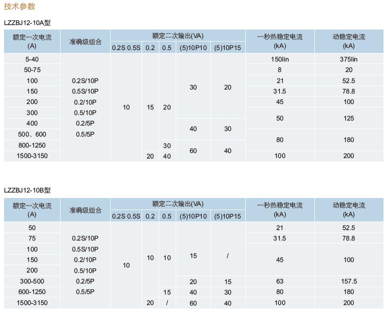 八、LZZBJ12-10A、LZZBJ12-10B、LZZBJ12-10C戶內電流互感器選型推薦:
