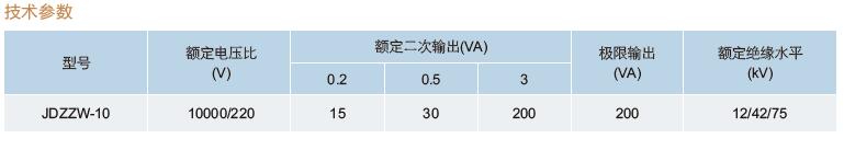 二、JDZZW-10電壓互感器技術參數